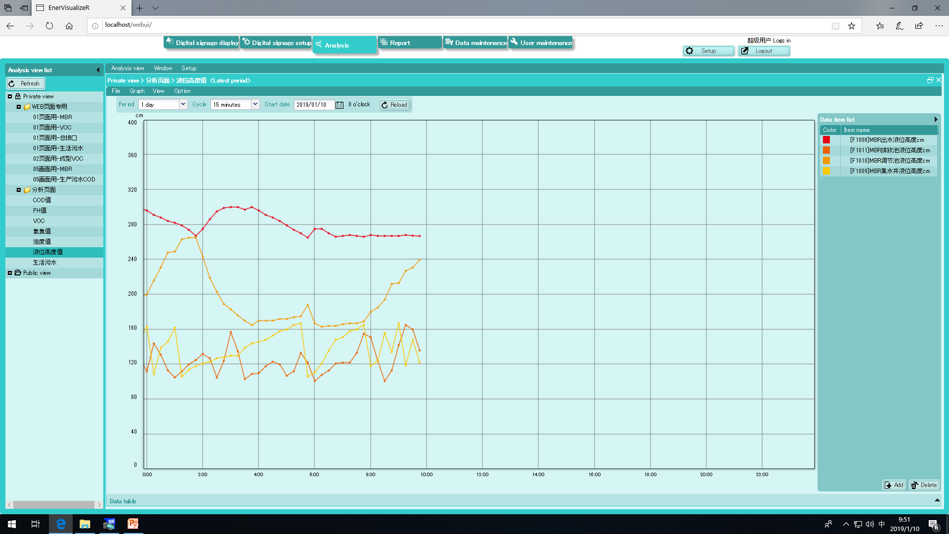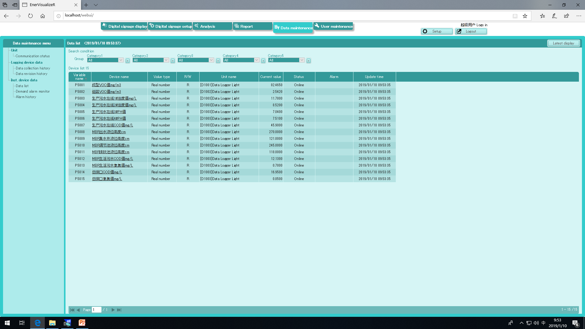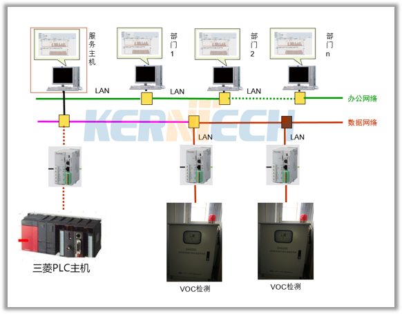 項目內(nèi)容:由松下DLL數(shù)據(jù)采集器,通過RS485通訊將需要采集的信息上傳到服務器上的松下EVR軟件集中管理。在全廠任意客戶端電腦上通過網(wǎng)頁形式將所需要的數(shù)據(jù)整理出曲線、報表等。同時系統(tǒng)具有報警郵件發(fā)送功能等。