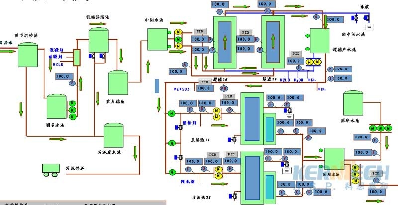 系統工程主要有以下幾部分組成,預處理部分,超濾部分,反滲透部分,回用水恒壓供水部分。
