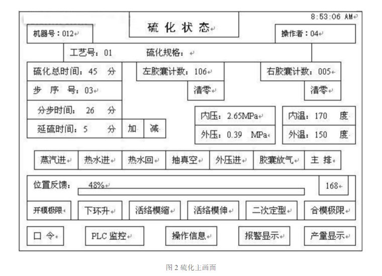 現(xiàn)以惠州普利司通輪胎公司生產(chǎn)的1310II型子午線輪胎硫化機(jī)為例,簡(jiǎn)要介紹有關(guān)觸摸屏的應(yīng)用情況。