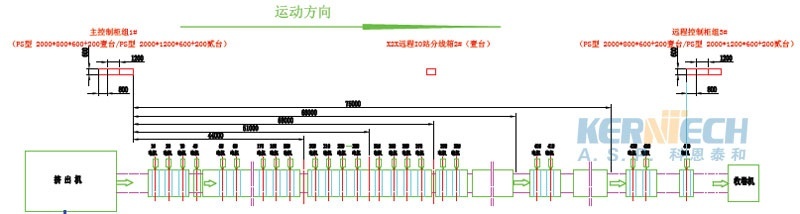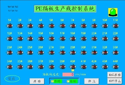 整個系統主要有三部分構成,分別為PLC部分,變頻器部分,上位機(工業平板電腦)部分。PLC部分主要控制成型輥的動作,循環水泵的啟動停止及成型機的移動和限位等,變頻器部分主要完成牽引傳動部分。上位機負責對生產線各牽引電機的速度進行控制和協調,使隔板在合適的張力下運行。平面圖片如下: