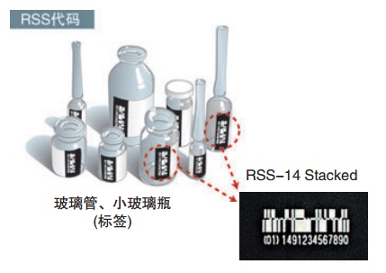 適合RSS碼刻印以及組合(Composite)刻印??稍谛〔A?、透明藥瓶等小型醫藥品瓶身的標簽上刻印產品 代碼,節省空間。