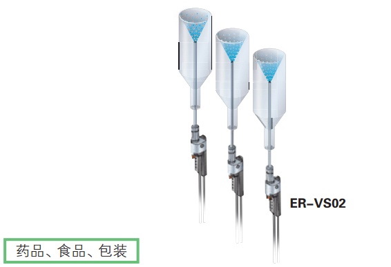 裝有藥品或化妝品的瓶內的污垢會對產品的質 量產生較大的影響。 使用ER-VS02后,可通過噴嘴傳送對瓶內進 行靜電消除,防止污垢再次附著。