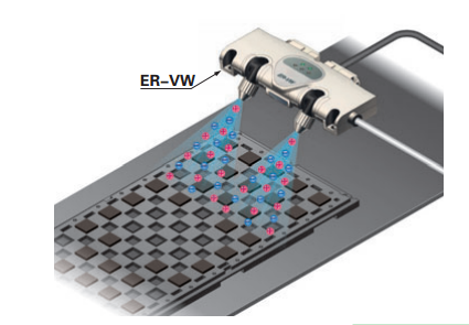 由于ER-VW的靜電消除區域與IC托盤的標準 規格相同,因此可對工件進行均勻的靜電消除 作業。
