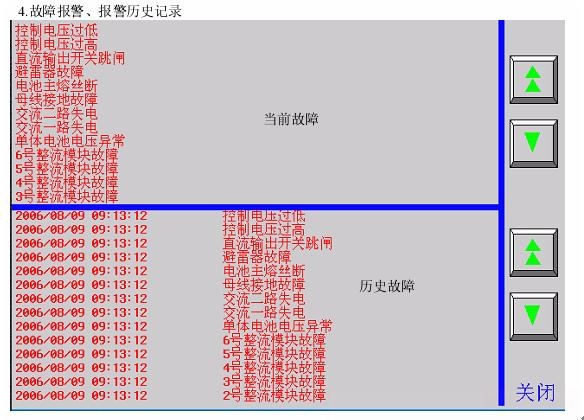當前故障在主屏下方用跑馬燈方式醒目顯示。記錄保存二百條歷史故障,掉電保持所以記錄。每個單一故障都有相應的信號軟壓板,在故障暫時不能排除的情況下可斷開報警信號輸出。
