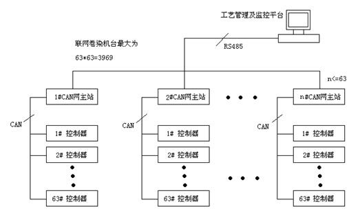 每一臺卷染機配一臺控制器,因此網絡結構可以連接3969臺卷染機。工藝管理和設備狀態監控均可在網絡平臺上執行。
