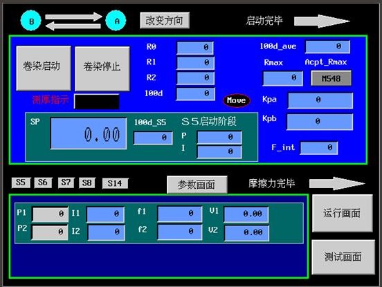 本系統采用張力閉環與速度閉環控制方式,同時加載了針對張力的專用算法。使卷染機真正達到恒張力,恒線速度,可以零張力(掉布)啟動,零張力正常運行。