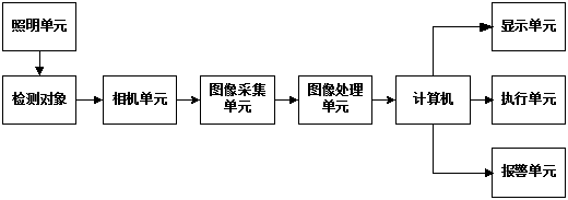 說明:本系統(tǒng)采用機(jī)器視覺技術(shù)對(duì)薄膜質(zhì)量進(jìn)行檢測(cè),機(jī)器視覺檢測(cè)系統(tǒng)一般由以下幾個(gè)部分組成:照明單元、相機(jī)單元、圖像采集單元、圖像處理單元、計(jì)算機(jī)、顯示單元、執(zhí)行單元和報(bào)警單元,如下圖所示。