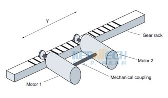 X軸共用了四個(gè)電機(jī),同步驅(qū)動(dòng)一個(gè)龍門,先單邊采用消隙控制,再兩邊同步,才能保證系統(tǒng)的控制精度。