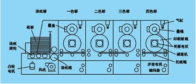 以高速雙面印刷機(jī)為例,其整機(jī)的動(dòng)作控制部分由輸紙機(jī)、收紙機(jī)和主機(jī)三部分組成。主機(jī)除主電機(jī),上、下水輥電機(jī),制動(dòng)輥電機(jī)分別由四個(gè)變頻器控制外,其余主要?jiǎng)幼饔善邆€(gè)氣缸分別來控制上水輥、下水輥、上墨輥、下墨輥、遞紙、上滾筒、下滾筒等的離合動(dòng)作。氣路的控制分為手動(dòng)和自動(dòng)兩種模式。整機(jī)的核心調(diào)試工作就是電氣、氣動(dòng)與機(jī)械動(dòng)作相匹配,避免印刷中紙張的浪費(fèi)。
