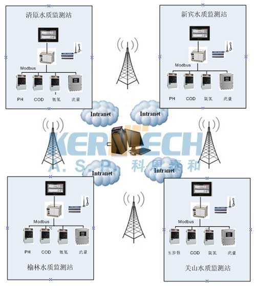 四個水質監測站距離分布在撫順市四周,相距100公里有余,采用何種方式通訊成了首要考慮的問題,經過討論,最終采用GPRS方式,現場安裝GPRS數據貓,需要傳輸數據時進行撥號到水利局中心站。