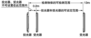 | (注1): | 檢測距離是在投光器和受光器之間可設定的范圍。檢測物體的檢測距離也可為0.2m以下。 |