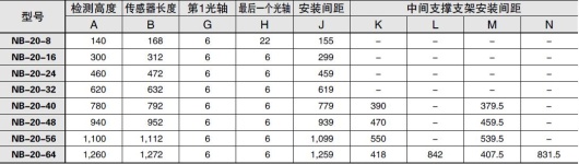 | 型號 | NB-20-40 | NB-20-48 | NB-20-56 | NB-20-64 | |