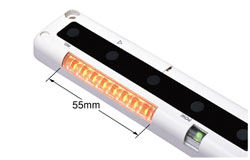 投光器和受光器都裝備有55mm寬的大型作業指示燈。此傳感器用于檢選非常理想。在NA1-PK5中,我們使用了8個橙色LED指示燈,大大提高了可見度。 |