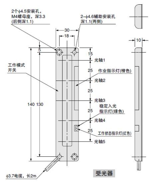 | 電纜延長 | 0.3mm2以上的電纜時,投光器和受光器的全長均可延長至100m | ||||