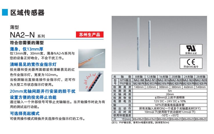 通用超薄型區域傳感器 NA2-N系列 NA2-N20(NA2-N20-PN)