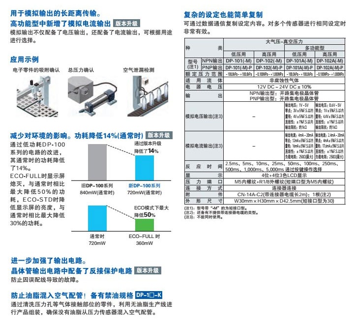 通過低功耗DP-100系列的電路的改進,其通常時的功耗降低了14%。 |