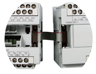 當無法預測客戶自身的機械·設備將來需要多少數量的I/O點數時,對于PLC機種的選擇會感到猶豫不決以及不安。但是,通過使用FP-X擴展單元,FP-X0的I/O點數可以達到最大180點。因此能夠消除客戶的不安與猶豫。并且通過FP0R擴展單元的使用,可將I/O點數擴充至236點。